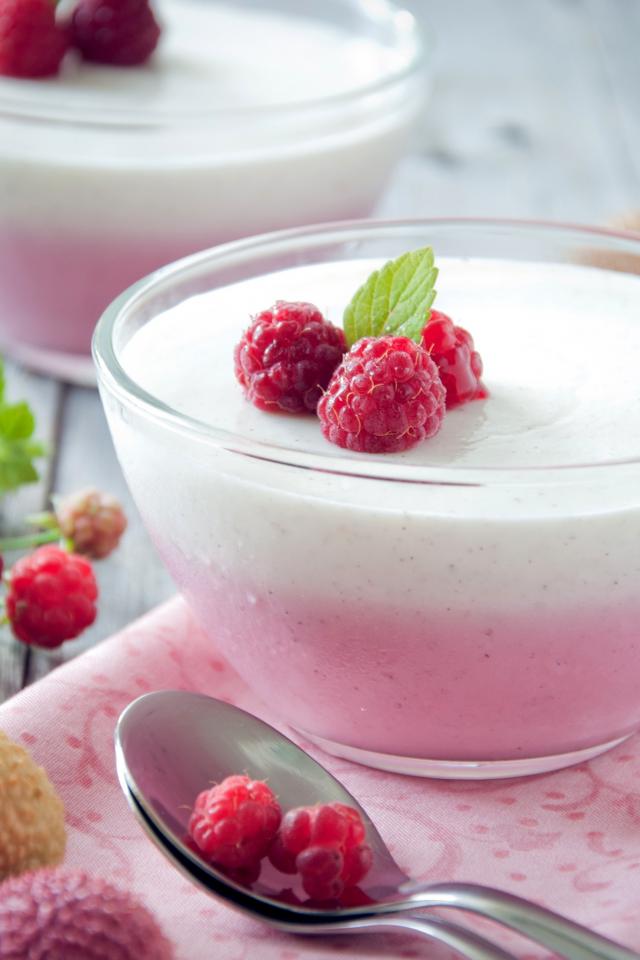 Wallpaper Milk and berry soufflé with raspberry and mint