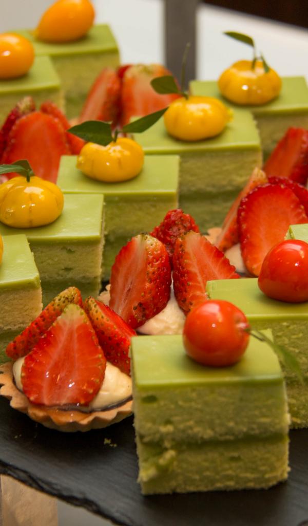Wallpaper Appetizing sweet cakes with cherries and strawberries