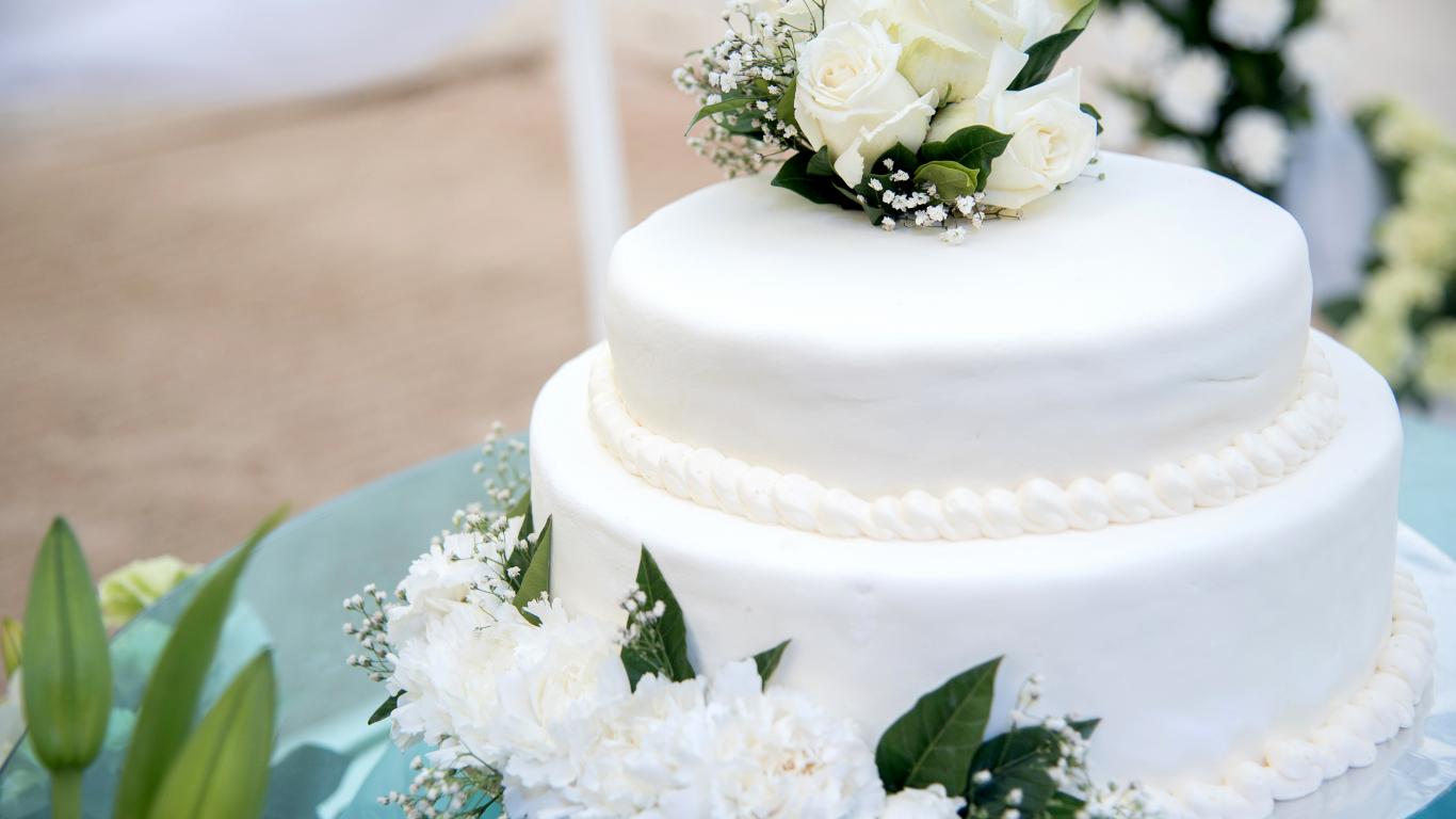Wallpaper Big beautiful wedding cake with white roses and peonies