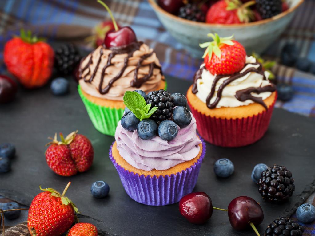 Wallpaper Delicious festive capkaki with cream and berries