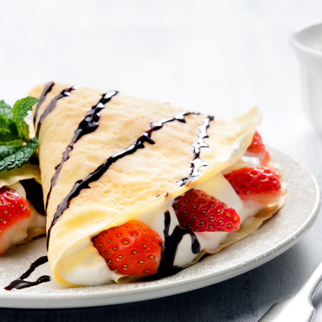 Wallpaper Delicious pancakes with curd and fresh strawberries