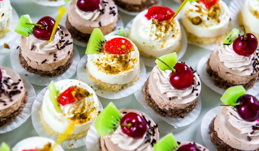 Wallpaper Delicious sweet cakes with berries for dessert