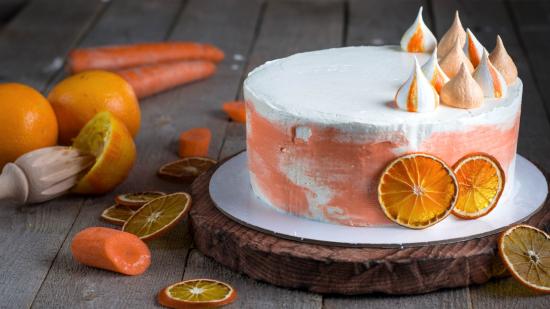 Wallpaper Appetizing cake with oranges on the table