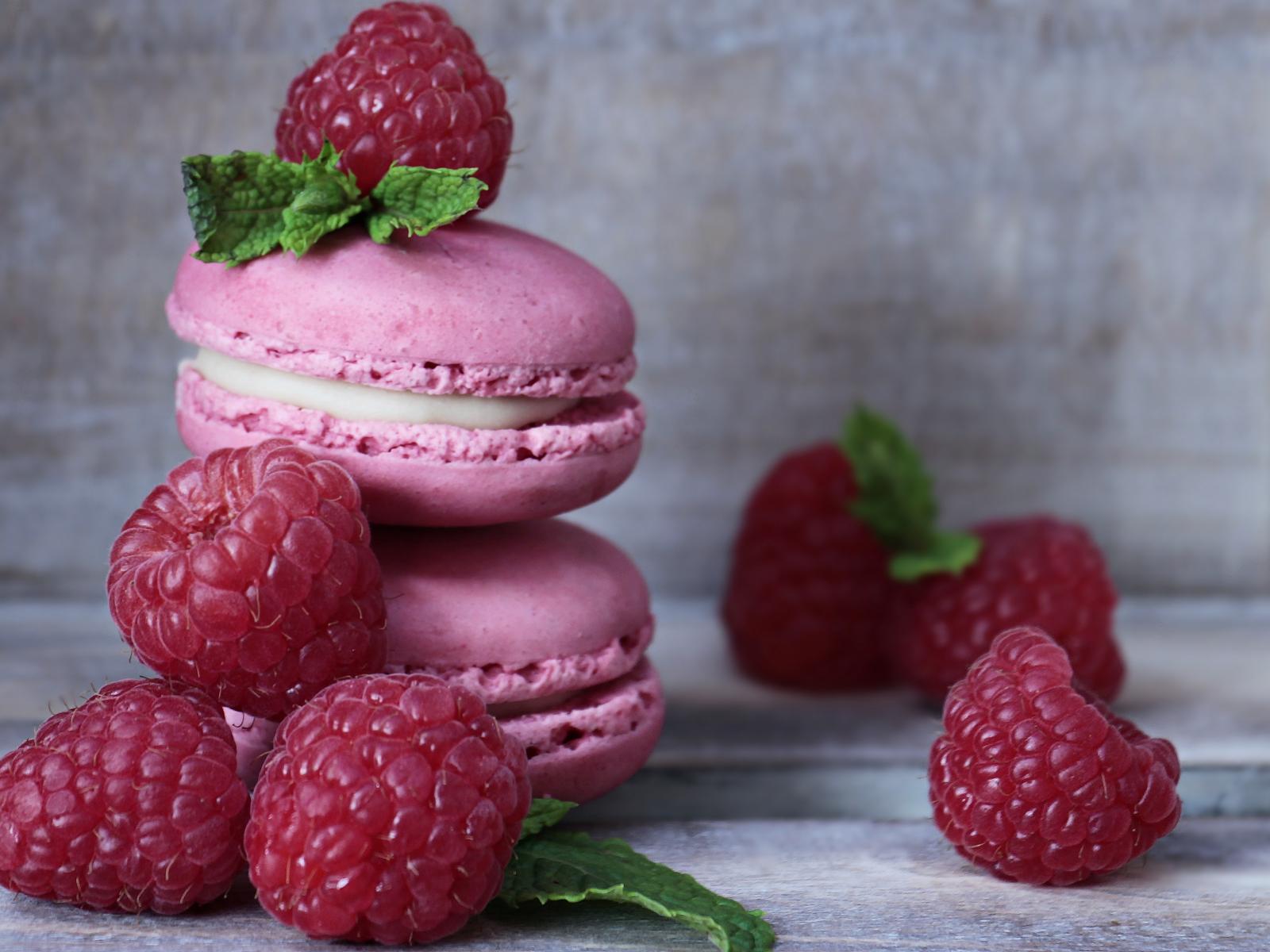 Wallpaper Sweet macaroni pastry with fresh strawberry