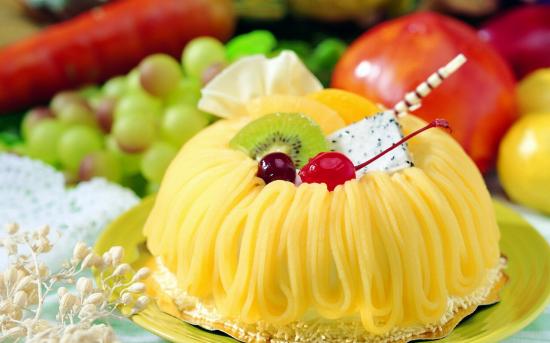 Wallpaper Sweet cake with cream, kiwi and cherries