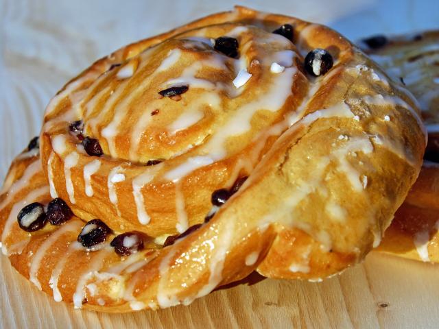 Wallpaper Fresh bun with raisins in sugar glaze