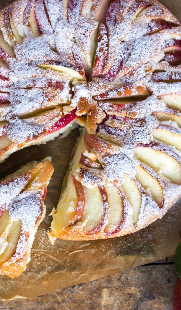 Wallpaper Appetizing pie with red apples and powdered sugar