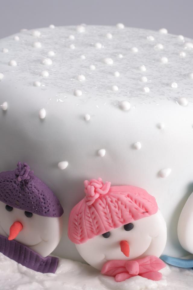 Wallpaper New Year`s cake decorated with snowmen from sugar