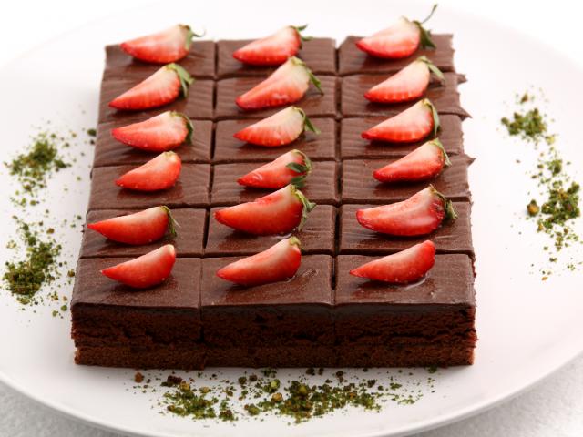 Wallpaper Chocolate cake with fresh strawberries on a white plate