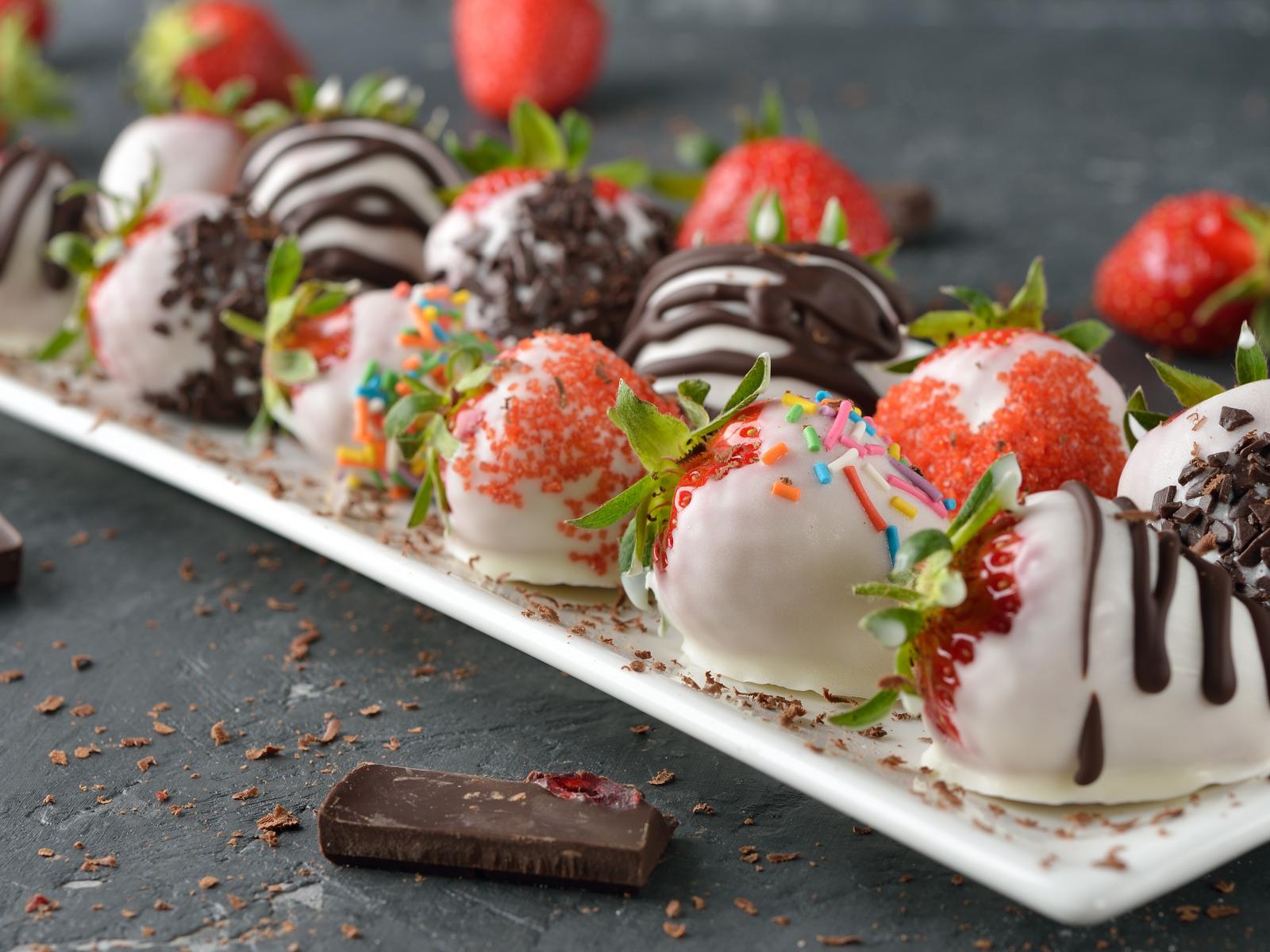 Wallpaper Strawberries in white and black chocolate
