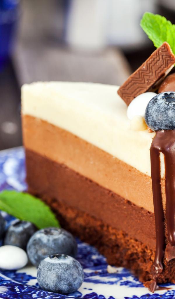 Wallpaper Three chocolate cake with blueberries