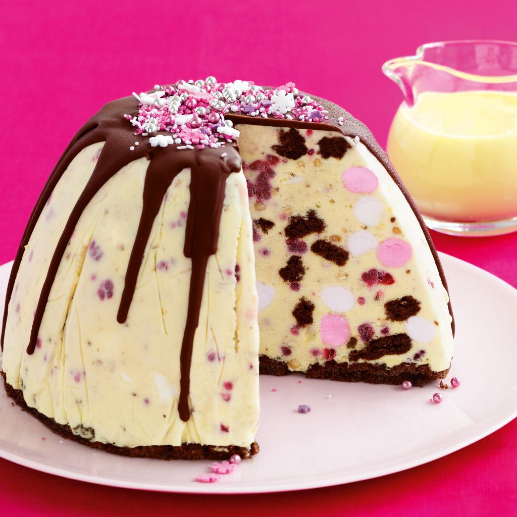 Wallpaper Delicious dessert with chocolate on a pink background