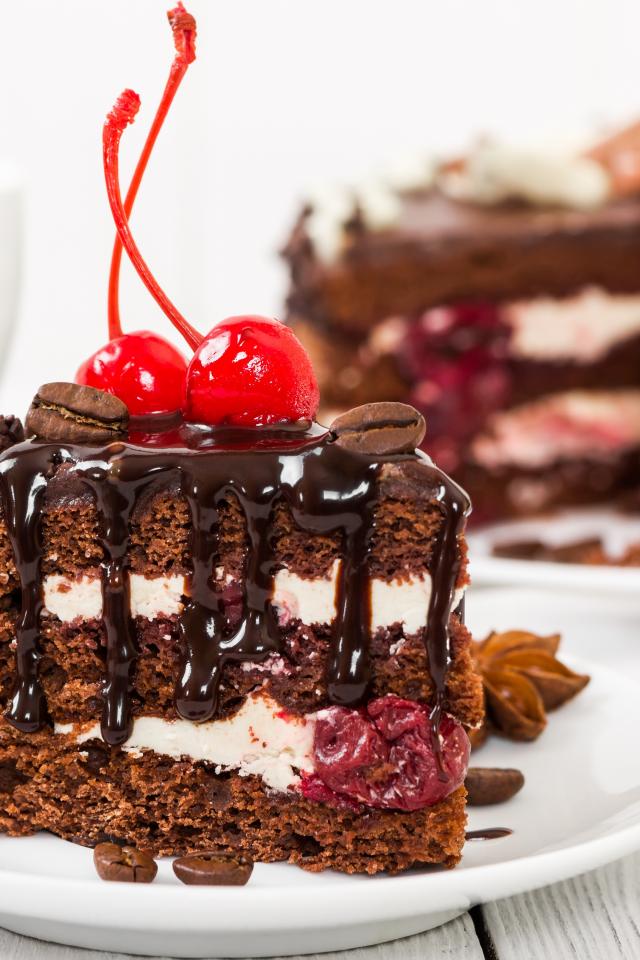 Wallpaper Delicious piece of cake with chocolate and cherries