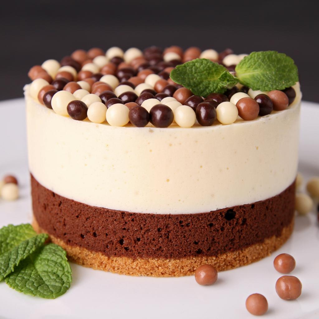 Wallpaper Perfect round cake with soufflé and chocolate balls