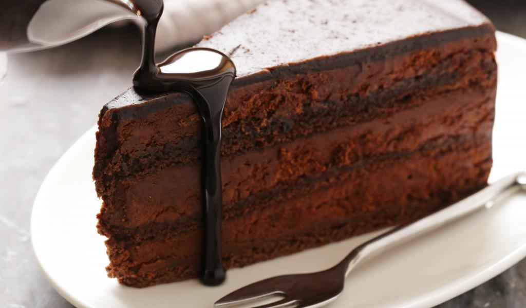 Wallpaper Cake with cream and chocolate decoration on a white plate