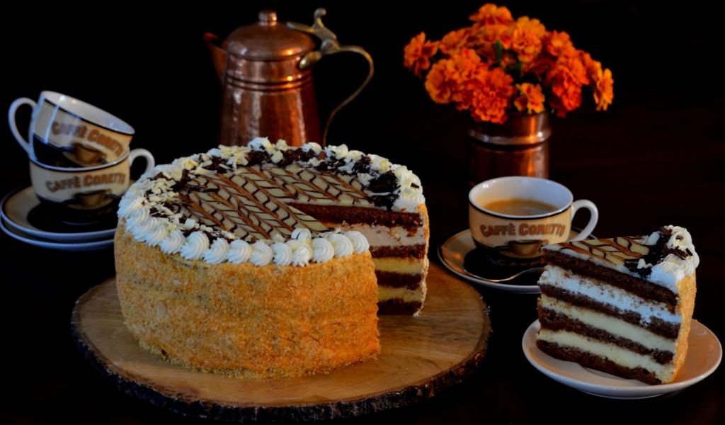 Wallpaper Beautiful festive cake on a table with flowers