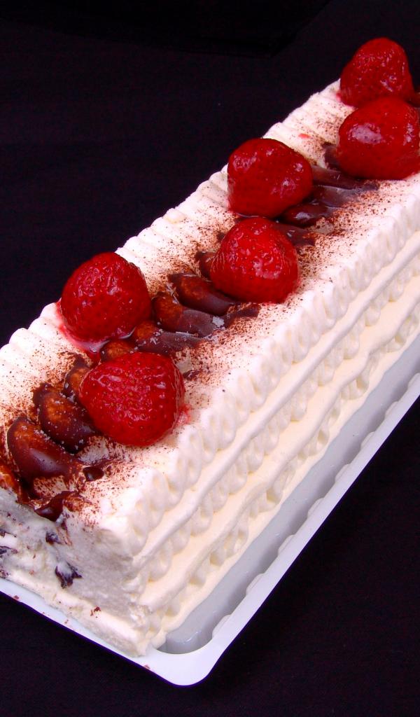 Wallpaper Delicious cake with souffle, white chocolate and strawberries on white background