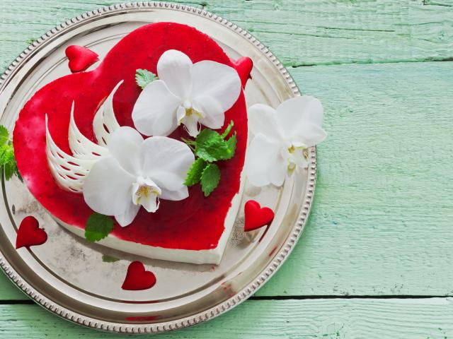 Wallpaper Beautiful cake in the shape of heart with white orchids
