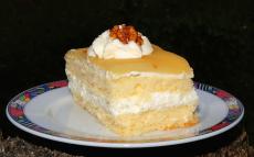 Wallpaper A large piece of cake with cream is decorated with a flower