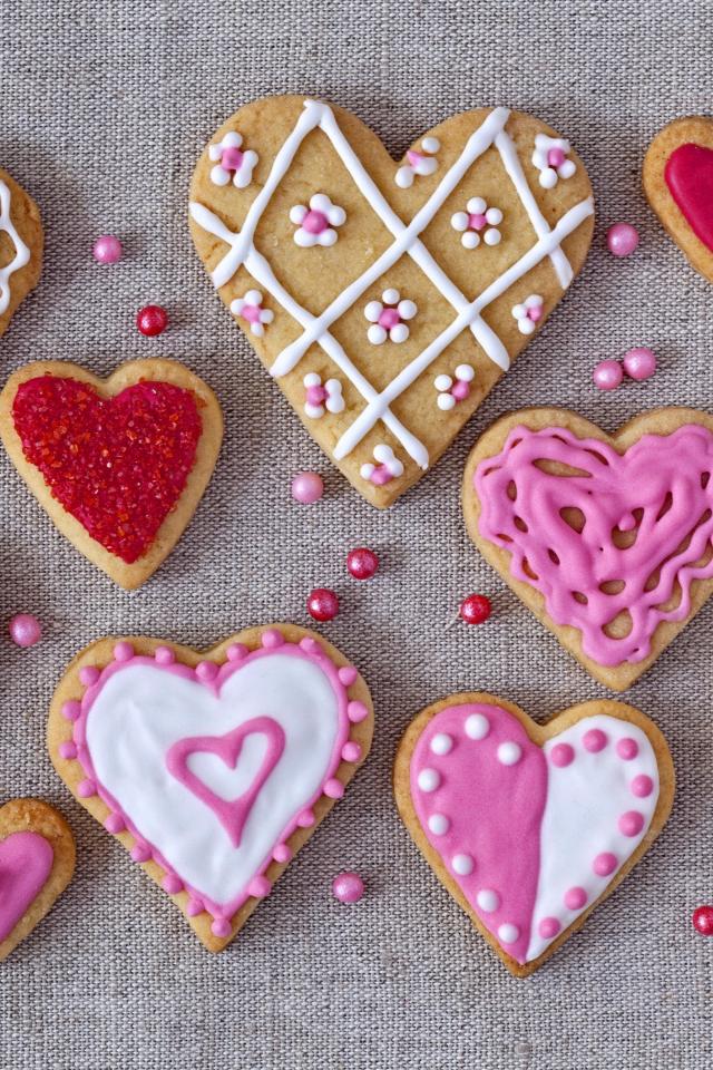 Wallpaper Appetizing cookies in the form of hearts with icing