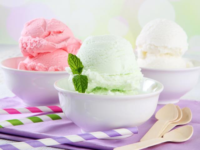 Wallpaper Fruit ice cream balls with mint leaves