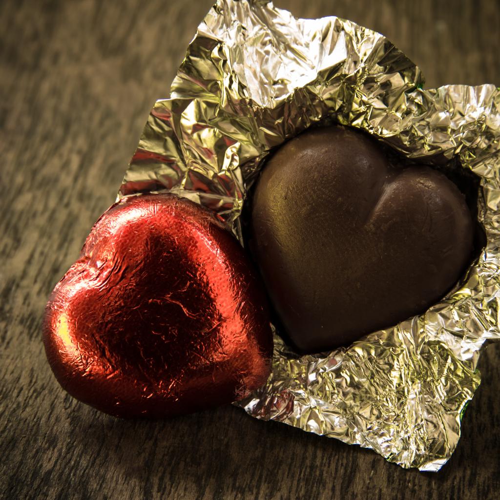 Wallpaper Chocolate candies in the form of heart in shiny foil