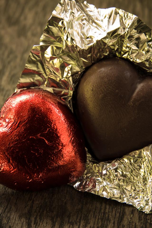 Wallpaper Chocolate candies in the form of heart in shiny foil