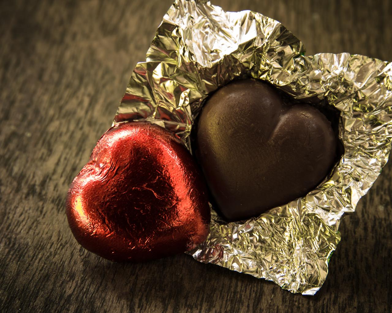 Wallpaper Chocolate candies in the form of heart in shiny foil