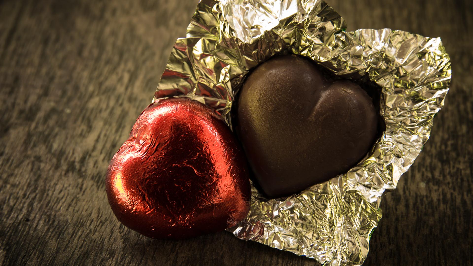 Wallpaper Chocolate candies in the form of heart in shiny foil