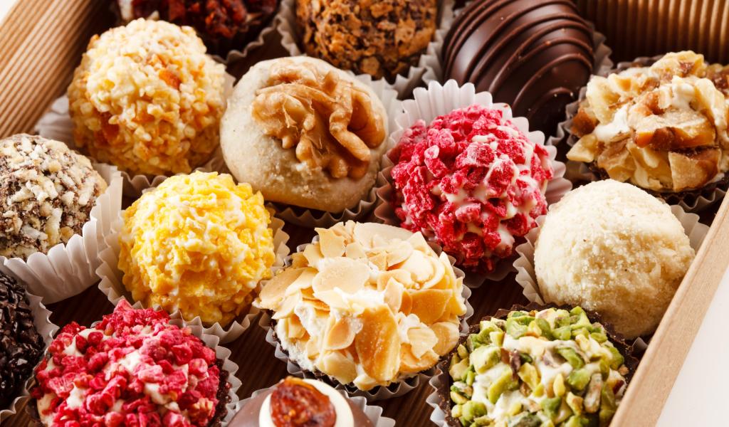 Wallpaper Appetizing assorted chocolates in a box