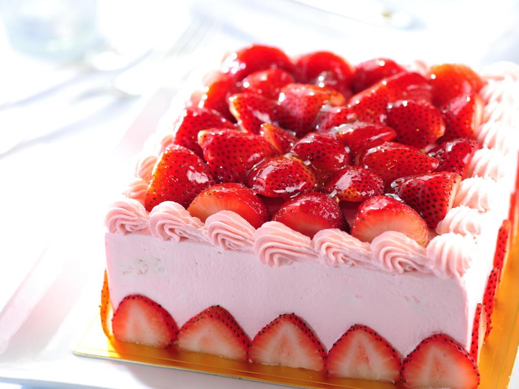 Wallpaper Beautiful festive souffle cake with strawberries