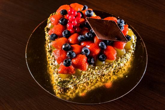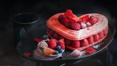 Wallpaper Beautiful cake in the shape of heart with berries