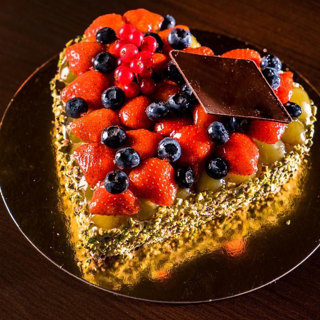 Wallpaper Beautiful cake in the shape of heart with berries