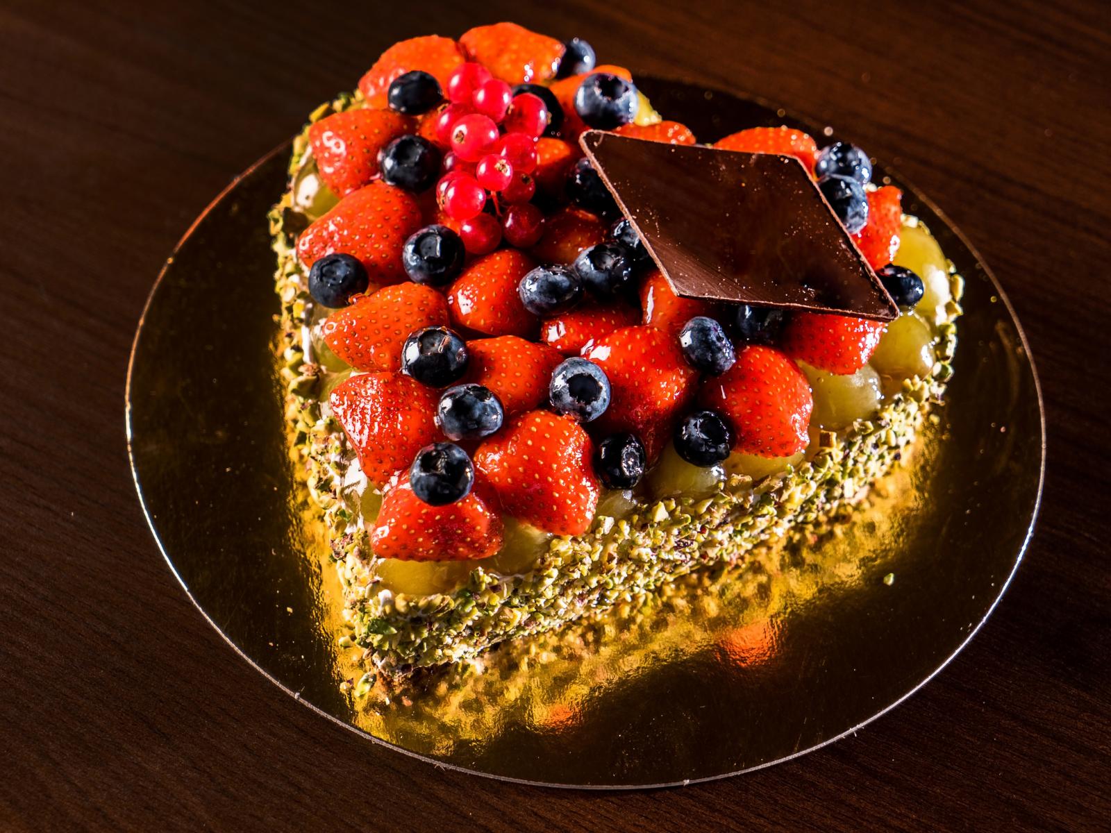 Wallpaper Beautiful cake in the shape of heart with berries