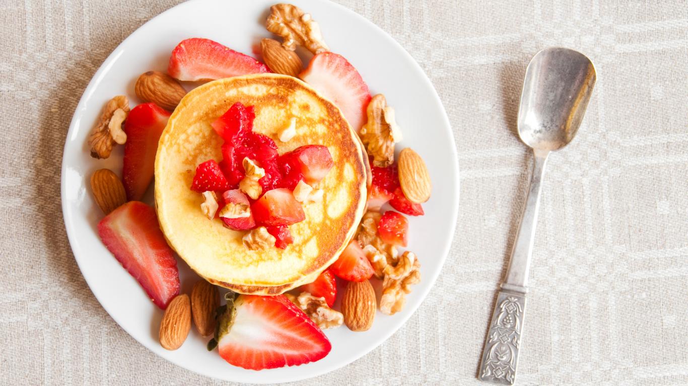 Wallpaper Ruddy pancakes with strawberries and nuts