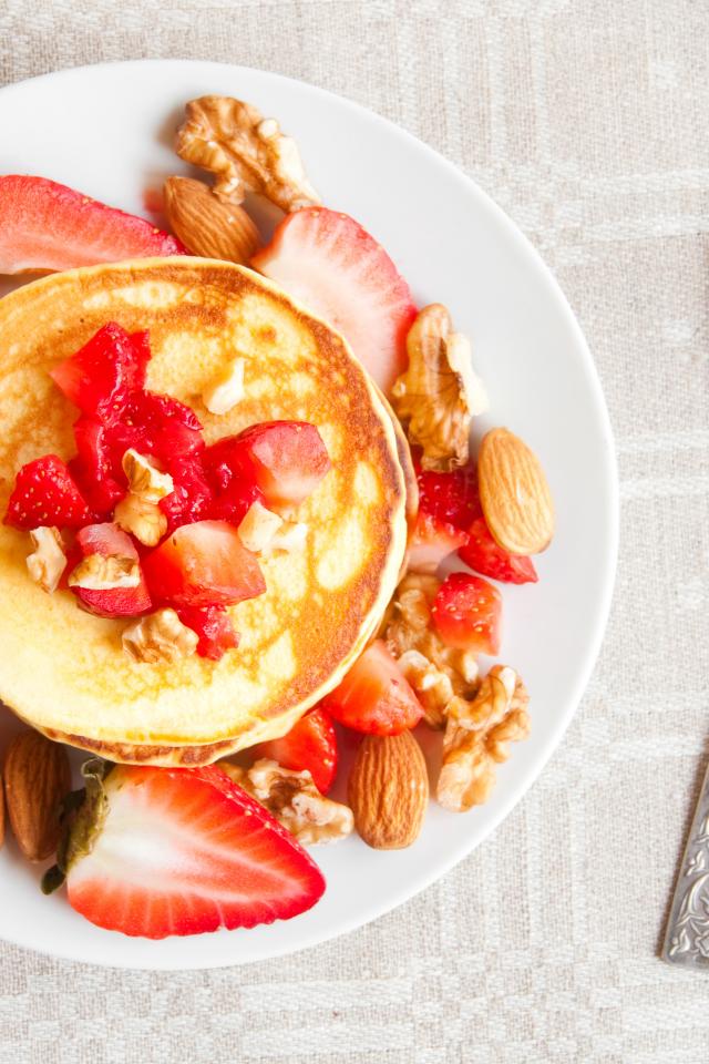 Wallpaper Ruddy pancakes with strawberries and nuts