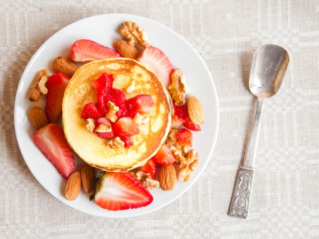 Wallpaper Ruddy pancakes with strawberries and nuts