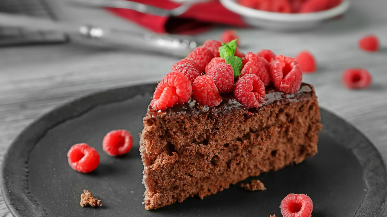 Wallpaper Chocolate appetizing cake with fresh raspberries