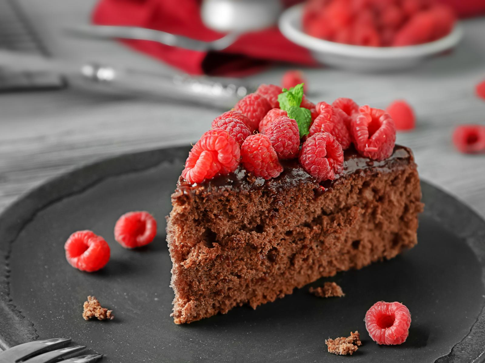 Wallpaper Chocolate appetizing cake with fresh raspberries
