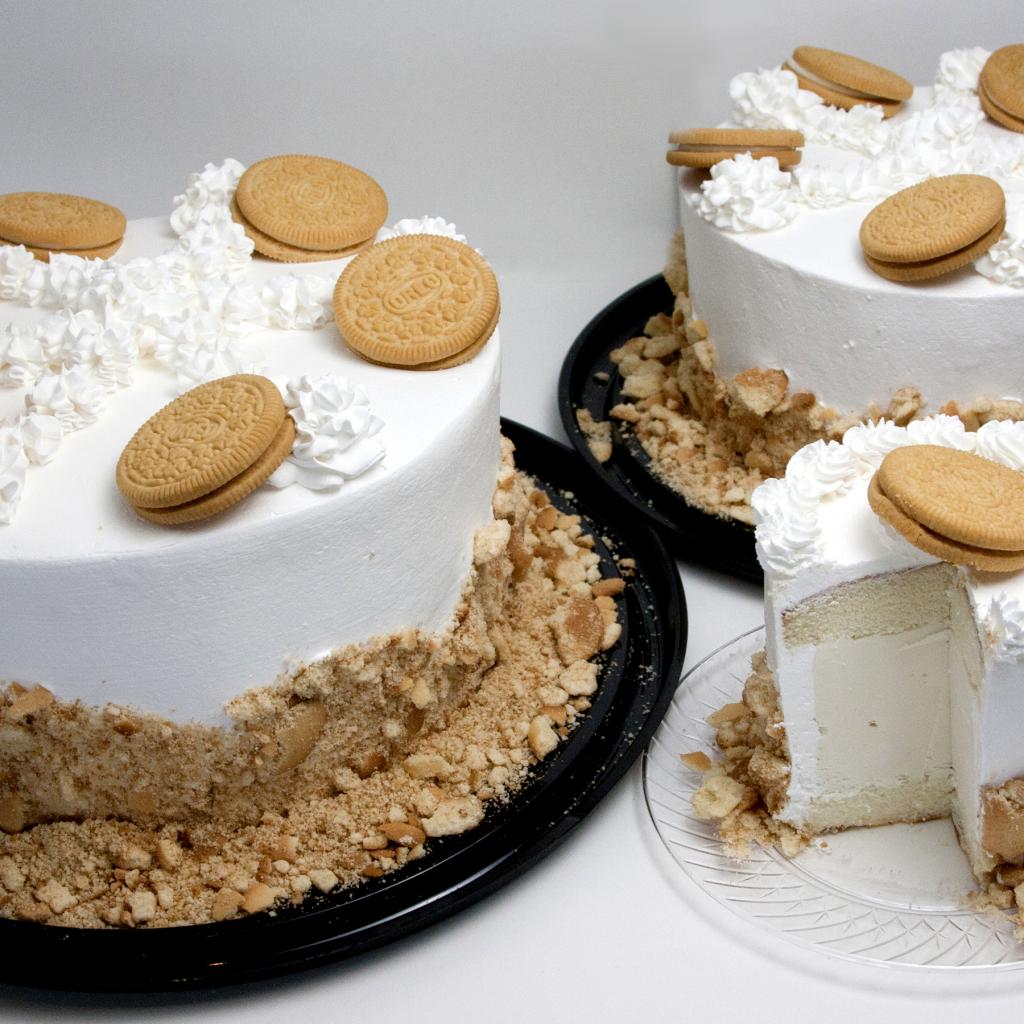 Wallpaper Delicious cake with cream and halo cookies