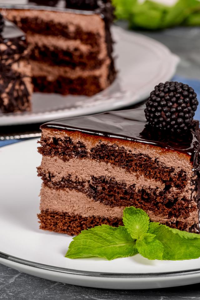 Wallpaper Appetizing cake with chocolate and cream on a plate