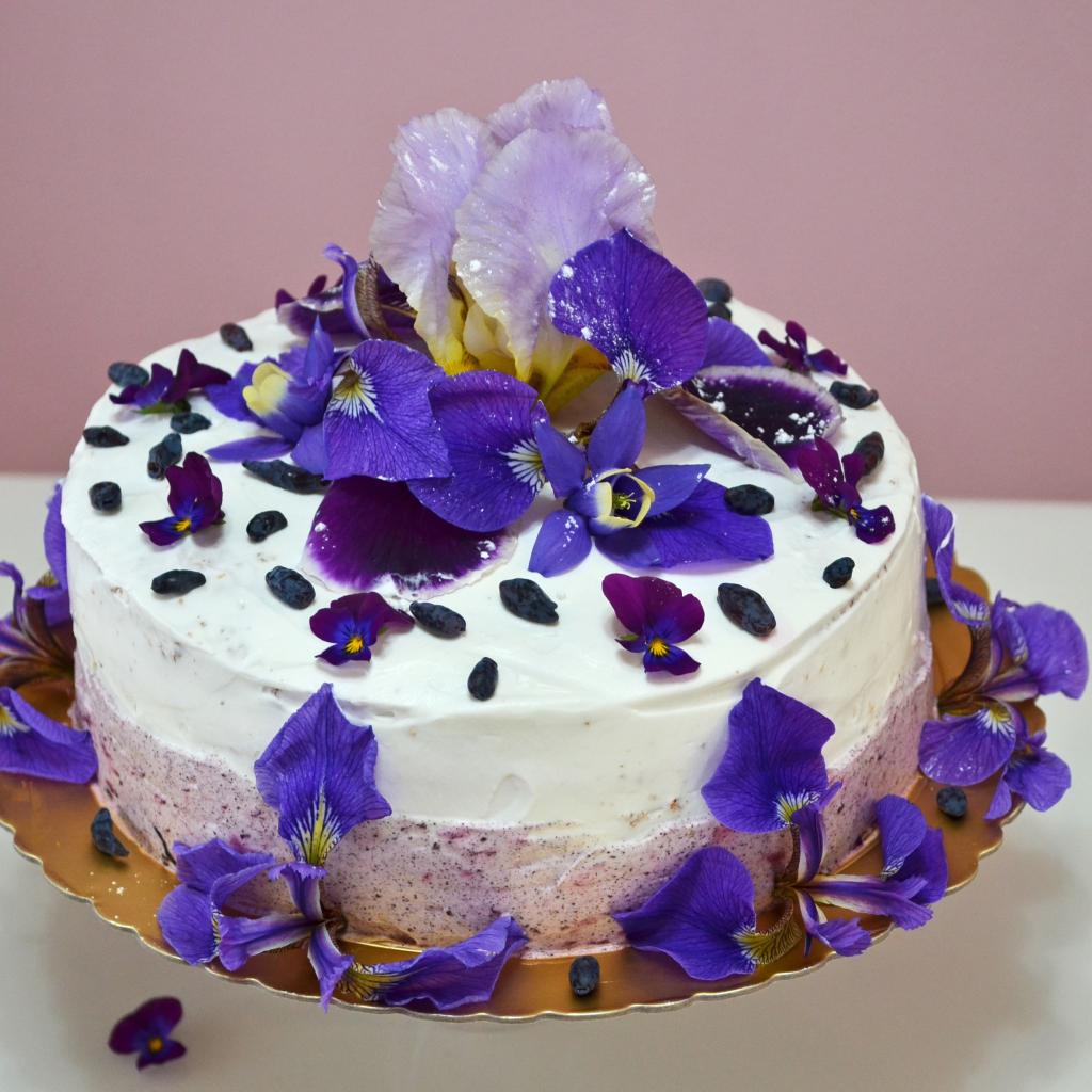 Wallpaper Beautiful cake with purple iris flowers