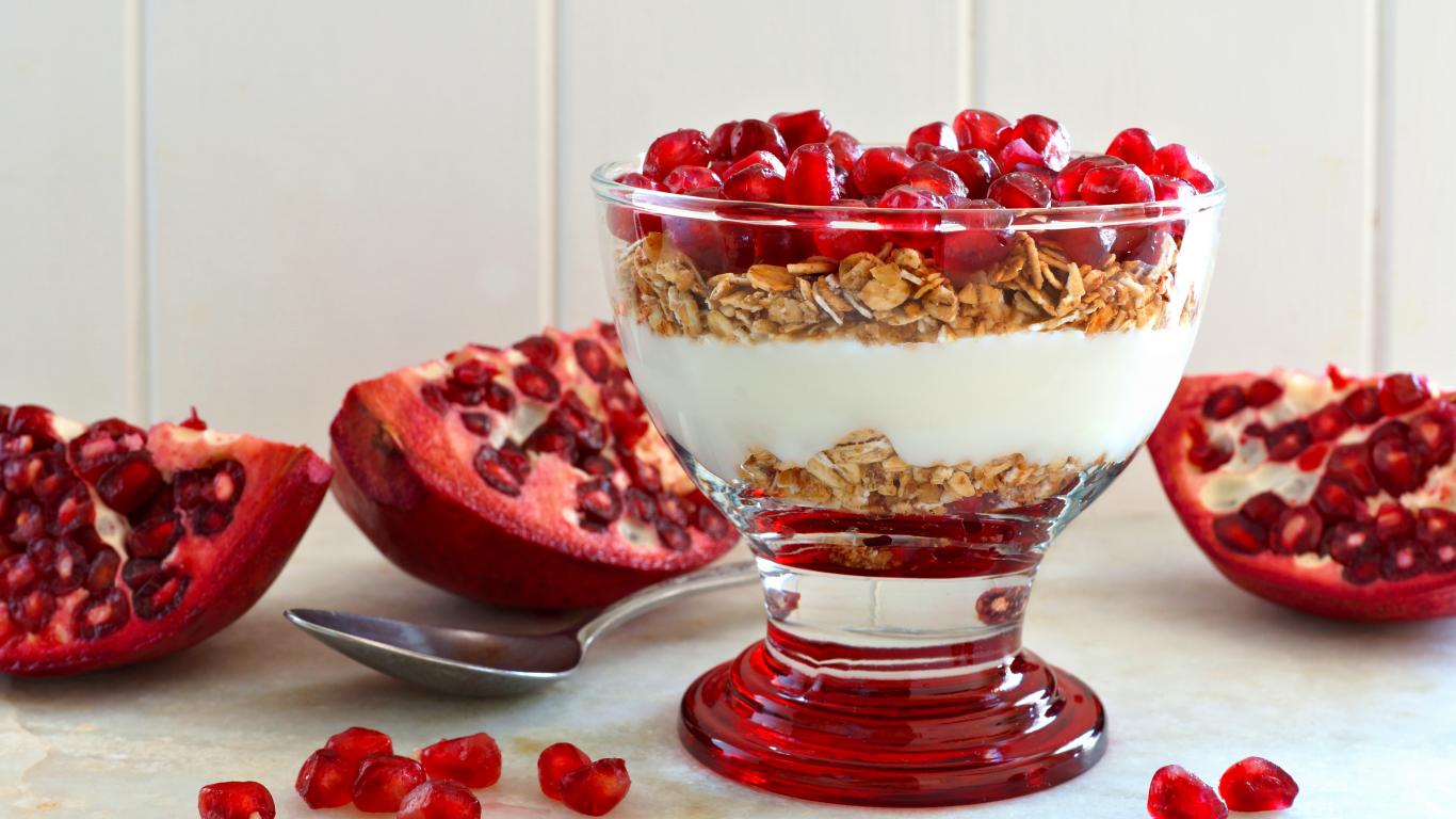 Wallpaper Muesli dessert with yoghurt and pomegranate seeds