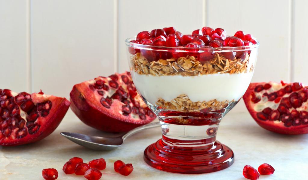 Wallpaper Muesli dessert with yoghurt and pomegranate seeds