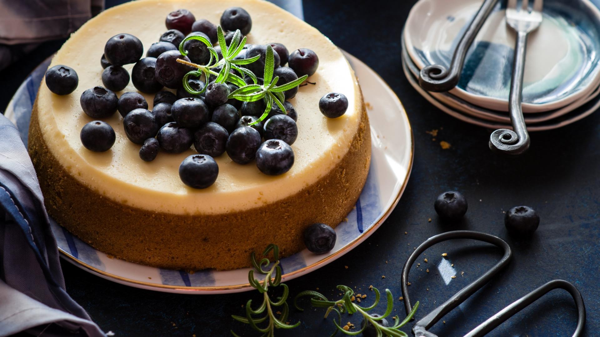 Wallpaper Appetizing tasty pie with blueberries and mint