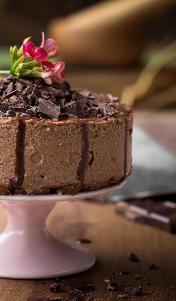 Wallpaper Appetizing cake with chunks of chocolate