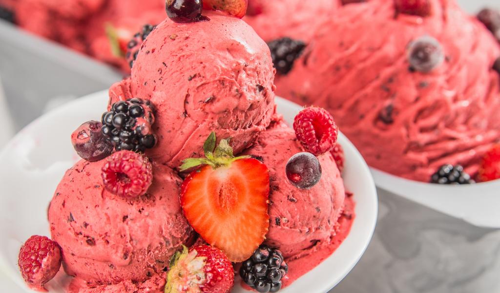 Wallpaper Fruit ice cream balls on a plate with berries