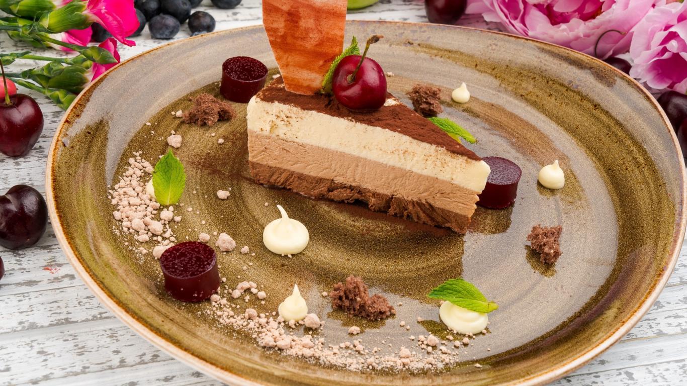 Wallpaper A piece of chocolate cake on a plate