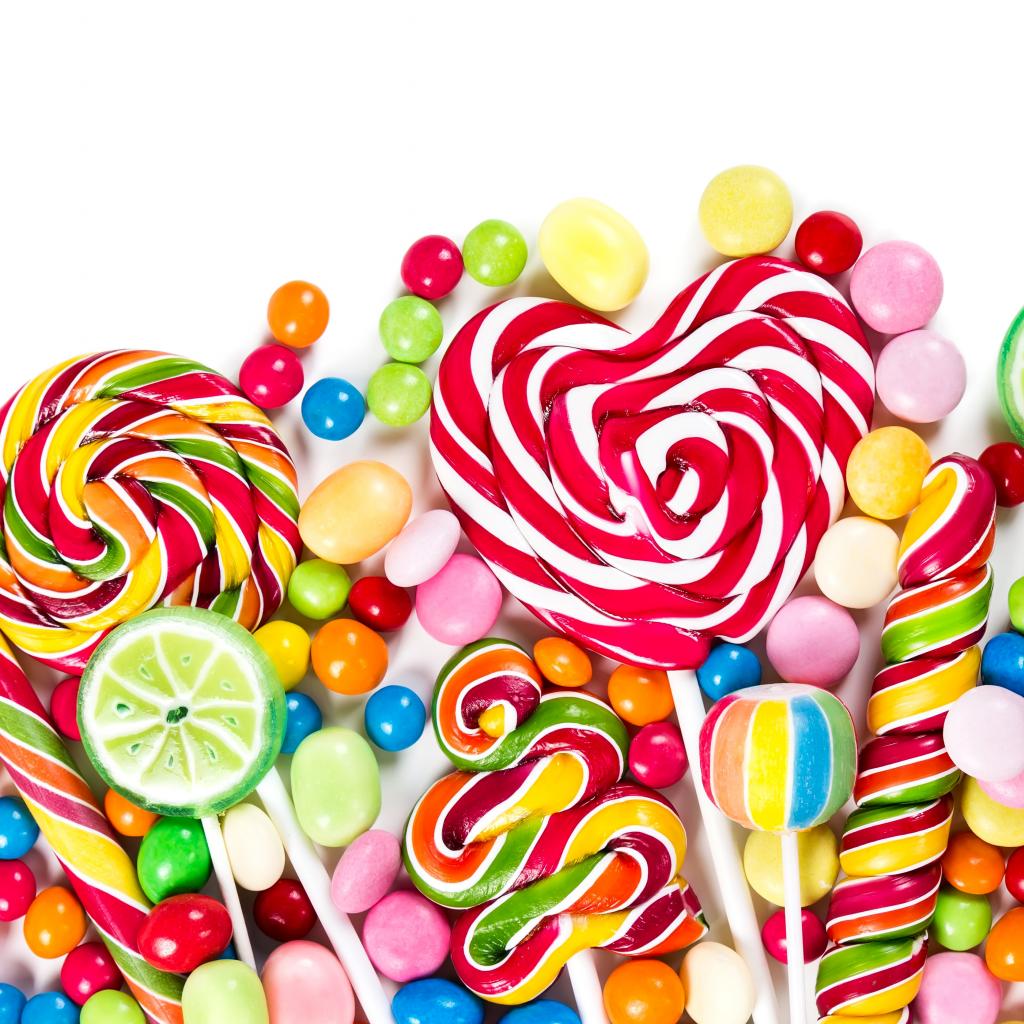 Wallpaper Multicolored lollipops on a white background