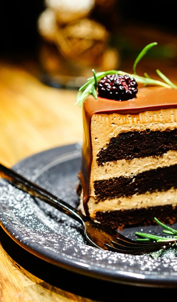 Wallpaper A piece of cake with blueberries on a plate